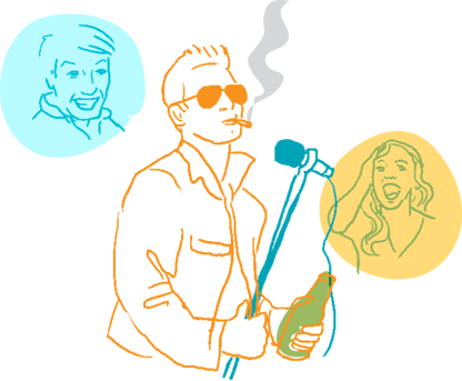 Au départ : On met en valeur le profil d’une personne ou d’un groupe, parce qu’on pense que cela va correspondre au goût et aux valeurs d’un certain public. En retour : la réponse du public visé confirme la vedette dans l’image qu’elle projette. Le travail des agents consiste alors à rejoindre le maximum de gens afin d’étendre l’influence et le public de la vedette. |