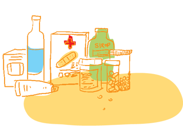 Il y a aussi tous ces produits qu'on peut acheter librement, sans prescription du médecin : sirops contre la toux, pilules contre le mal de dos, le mal de tête, le mal de gorge, des pastilles contre les brulûres d'estomac, des gouttes, des pansements, etc. La liste s'allonge tout le temps, parce que les chercheurs trouvent toujours de nouveaux remèdes.